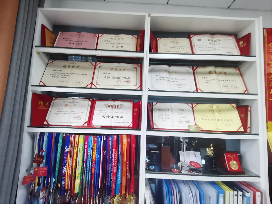 辦公室不大,墻上貼滿了機構獲得的各種榮譽,屋子的一角堆放著各種開展活動的物資,桌子上擺放著一摞厚厚的活動總結報告,處處向我們無聲地展示著這里忙碌而充實的工作。