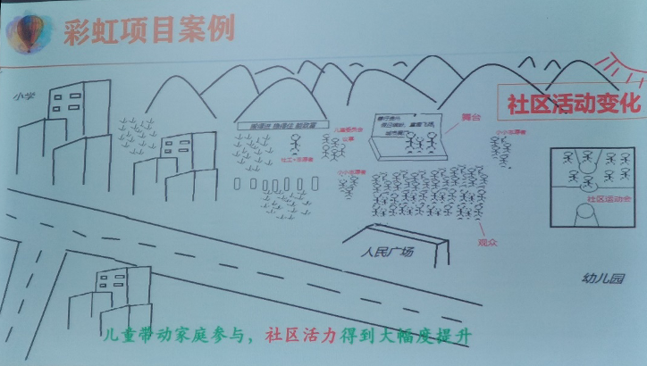 之后,總干事周宇虹又向項目組詳細地講解彩虹目前開展兒童服務的模式:通過在社區內開展兒童服務從而深入社區內部連結社區的兒童與居民,提高社區整體的兒童保護意識,并且將彩虹的活動中心打造成一個兒童可以感到安全自由的空間,當兒童感到危險或需要幫助和服務時,成為孩子們可以求助的安全小屋……